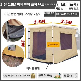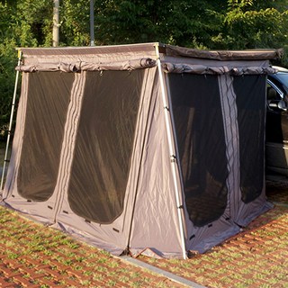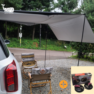어닝을 설치할 때는 차량의 루프 레일이나 측면에 부착할 수 있는 브래킷을 사용하여 안정적으로 고정합니다. 설치 후에는 어닝을 펼쳐 그늘을 만들고, 추가적으로 타프나 바람막이를 설치하여 더욱 쾌적한 공간을 만들 수 있습니다. 이 키트는 캠핑뿐만 아니라 해변, 등산, 바베큐 등 다양한 야외 활동에 활용할 수 있어 매우 실용적입니다.