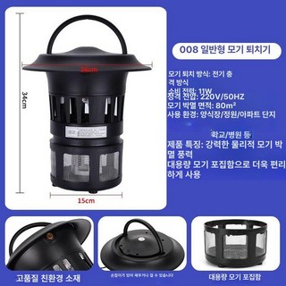 이 모기퇴치기는 보통 UV 램프를 사용하여 모기를 유인합니다. UV 빛은 모기가 선호하는 파장대에 해당하여, 모기를 끌어들이는 데 효과적입니다. 모기가 가까이 다가오면, 전기망에 접촉하여 즉시 사망하게 됩니다. 이러한 방식은 화학 물질을 사용하지 않기 때문에 환경 친화적이며, 사람이나 애완동물에게 안전합니다.